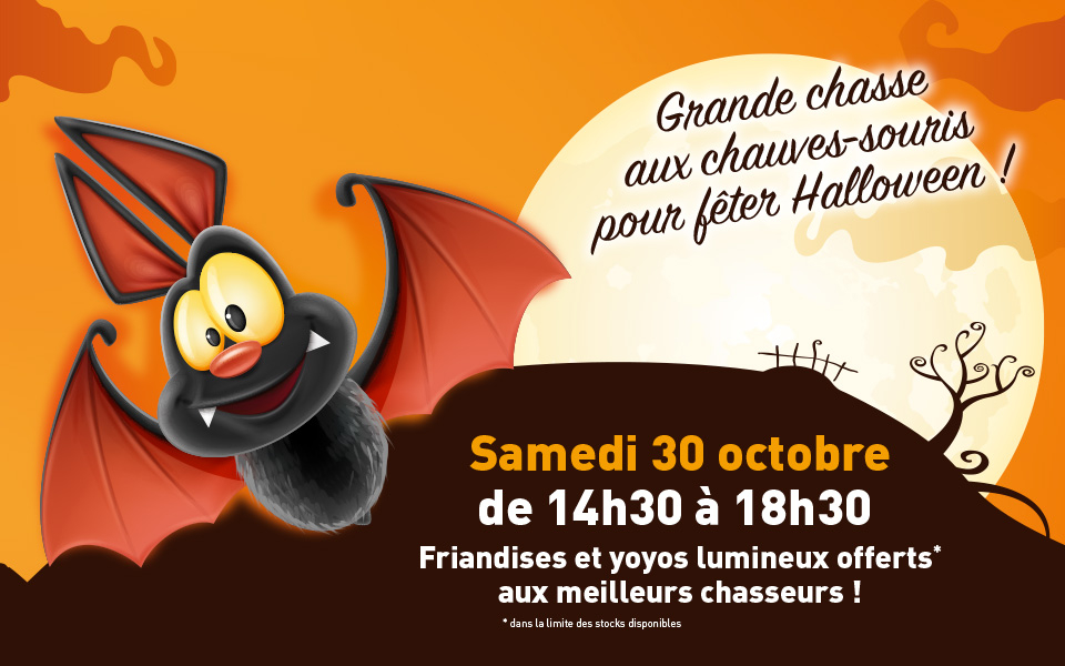 Samedi 30 octobre 2021, on fête halloween au parc commercial Les Cyprès à Saint-Aunès ! Grande chasse aux chauves-souris de 14h30 à 18h30, avec à la clé friandises et yoyos lumineux offerts aux meilleurs chasseurs ! Présence de Batman, l'occasion parfaite de prendre un selfie avec lui !
